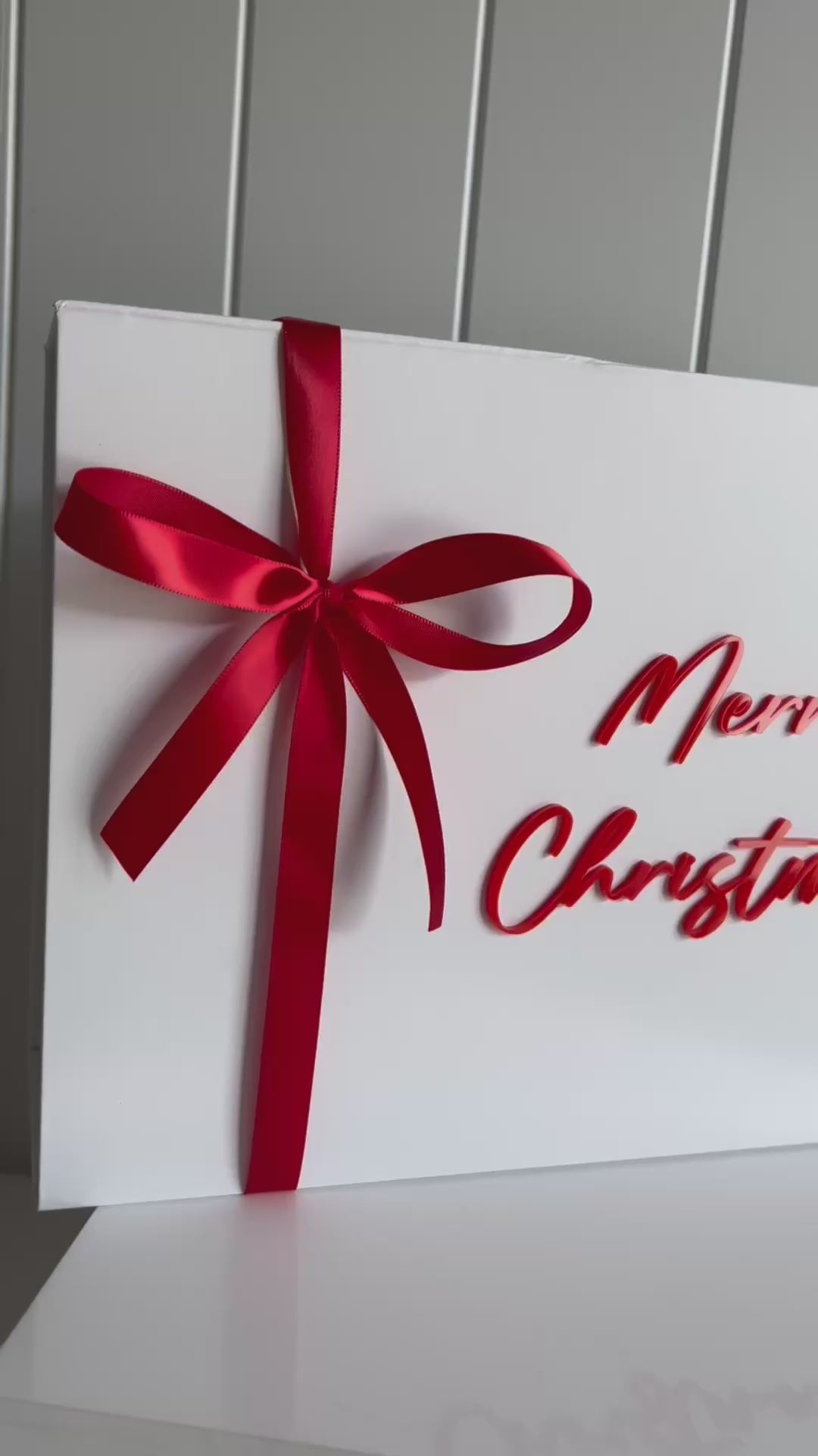 Merry Christmas Magnetic Gift Box with Acrylic Lettering and Bow