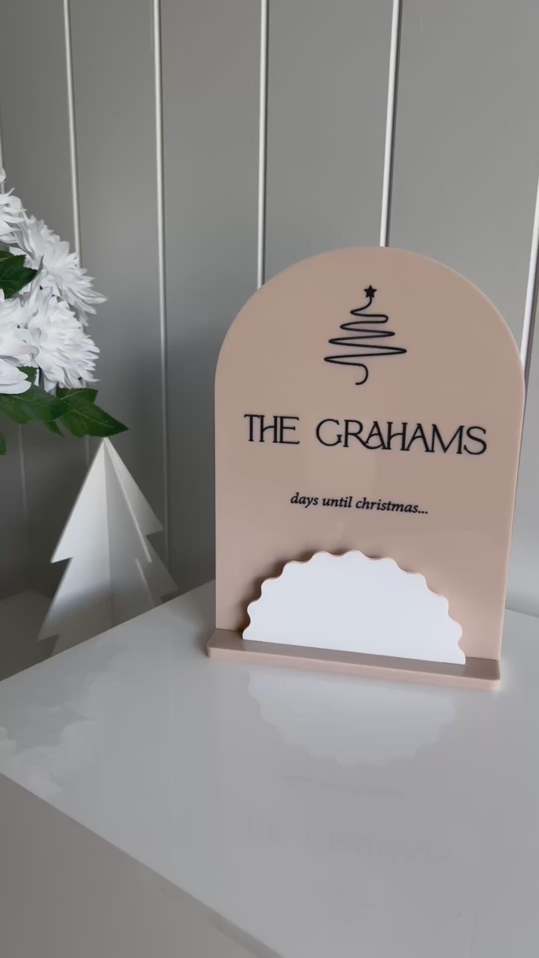Made from 3 mm premium acrylic, this freestanding arch features a smooth wipe-clean section to update the days — perfect for adding excitement to the lead-up to Christmas. Personalised with your family name, it’s a timeless piece you’ll bring out every festive season.